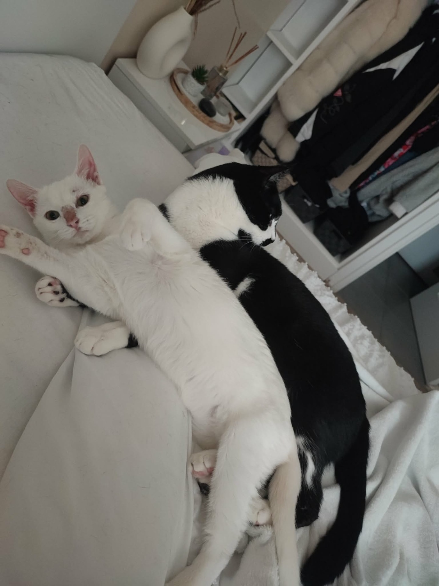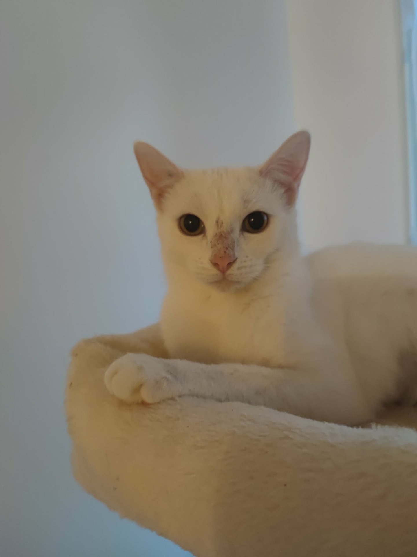 Colombe est très fusionnelle avec un autre chat, ce qui semble aujourd'hui freiner son épanouissement personnel. Pour cette raison, elle serait idéalement à placer comme chat unique, afin qu'elle puisse prendre pleinement confiance et créer un lien privilégié avec sa future famille.