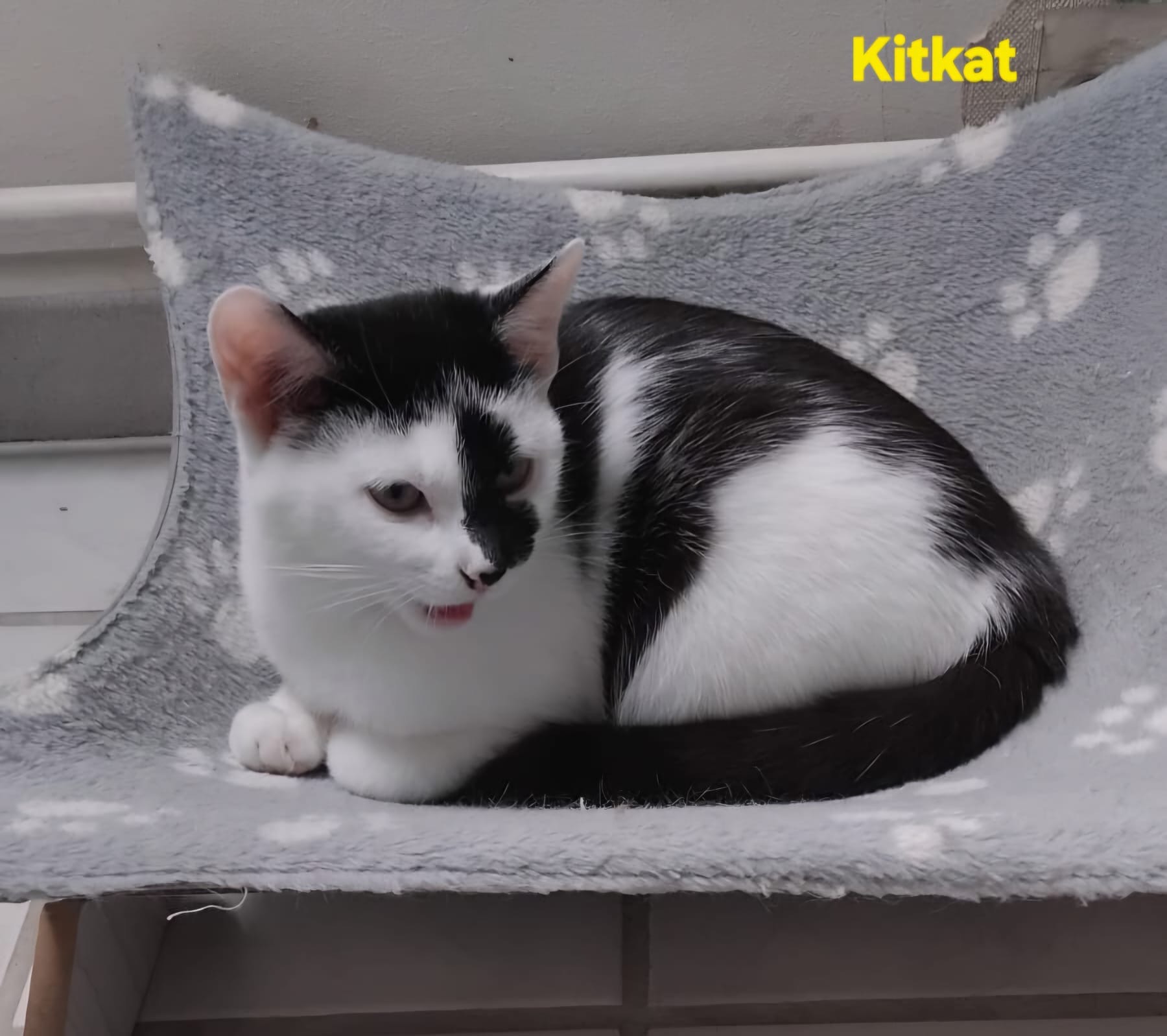 Kitkat est une minette timide au premier abord, mais une fois la confiance installée, elle se révèle très douce et câline.
