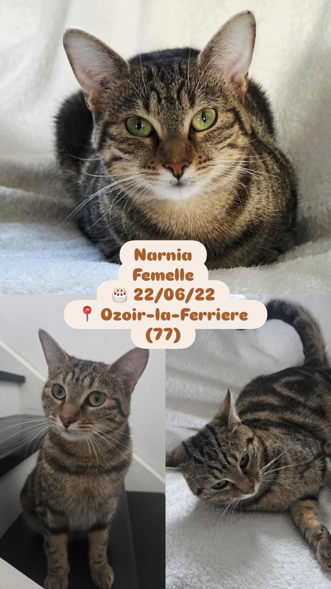 Timide au premier abord, Narnia se révèle être une minette très câline une fois en confiance.